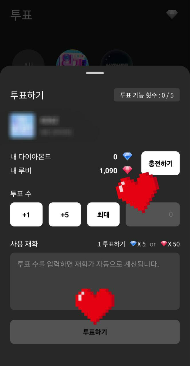 Live voting: 100 Heart Jellies = 1 vote. 5 votes per person.β