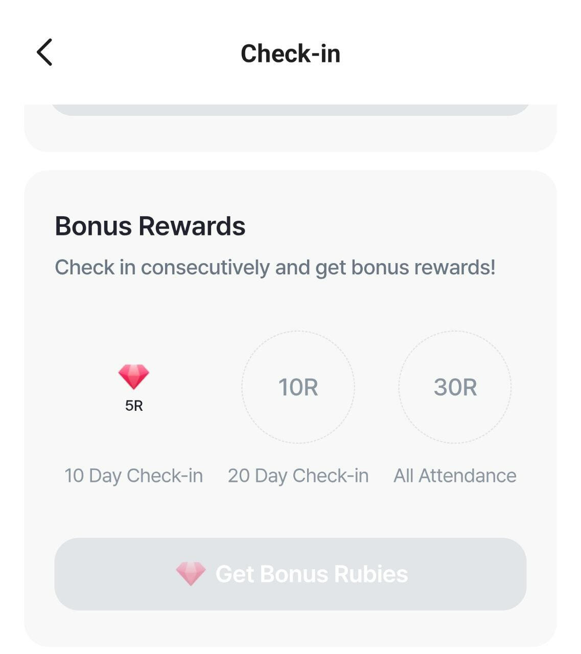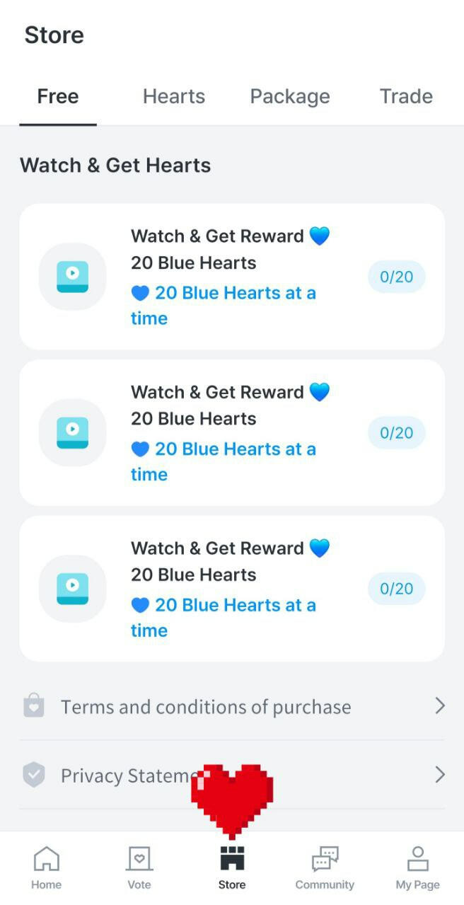 Check attendance dailyβ Collect Stars by watching ads as well. They can be exchanged to Ruby Hearts through Star Donation! 5 stars = 1 ruby heart β€οΈ (amount increases with your level)π You can get an extra 20 blue hearts if your post reaches 30 likes. Like BBs posts to help each other get more hearts.β