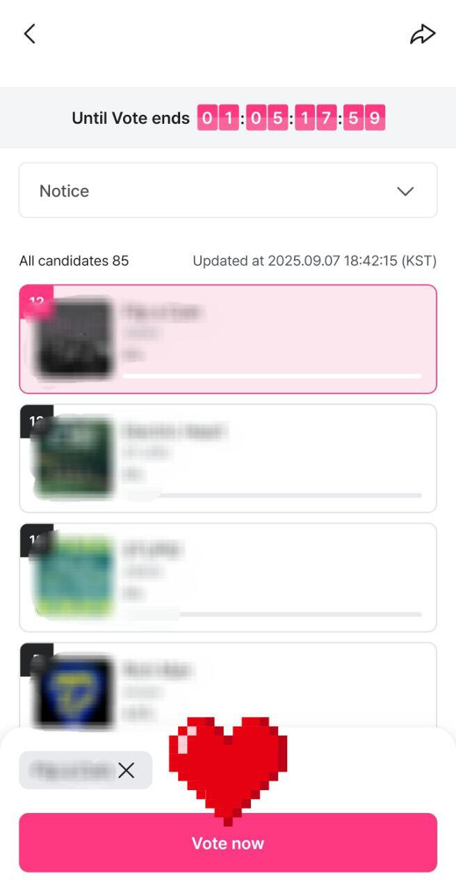 Early voting: 10 Heart Jellies = 1 vote. Unlimited amount.